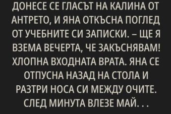 – Аз няма да гледам твоето дете! – извика тогава Ралица, и думите й се забиха в сърцето на Елисавета като нож. Отзвукът им се разнасяше не само в душата на майката, но и в очите на осемгодишната Дарина, която стоеше на прага и чуваше всичко.