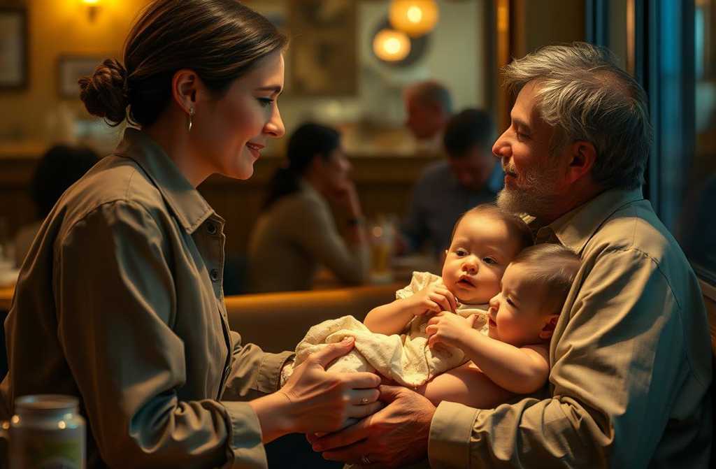 Ралица замръзна, вилицата във въздуха, и се обърна към мъж, клечил до масата ѝ. Нямаше повече от тридесет и пет години, но животта го беше изтощил. На гърдите му, завързани с парцал, бяха две малки бебета бледни и недохранени. Носеше протрити дънки и изтъркана тениска, оцветена от прах и пот. Трепереше не от страх, а от изтощение. Но в очите му нямаше срам само отчаяната любов на баща.