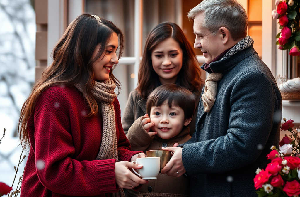 Синът на домакините се появи. Двамата тръгнаха към него и паднаха в снега едновременно. Той им каза нещо. Те се изправиха, отпуснати, и потеглиха към дома на майка ѝ.