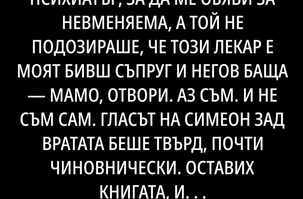 Петър не трепна. Просто си записваше в бележника с акуратният си почерк. Ясно усещах диагнозата, която вече лепваше: Пациентката проявява агресивна защита, проекции…
