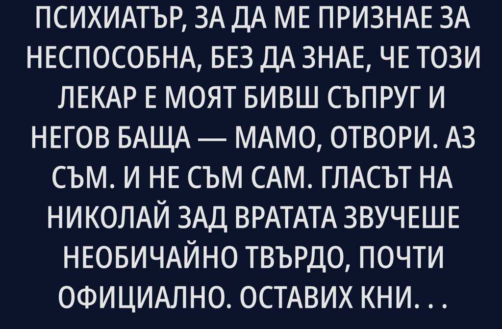 Но Николай вече не го слушаше. Погледът му се спря върху мен видях бездната на предателството.