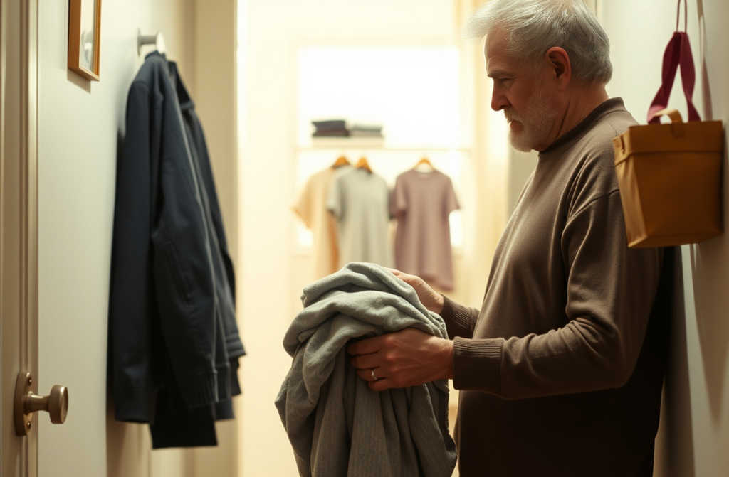 Освен дрехите, пуснах и няколко одеяла, всичко изпрах, изгладих, подредих и оформих голяма торба, та да го върна у тях. Добре, че жилищата бяха съседни и не ми се налагаше да вървя с тежките торби далече. Той живее на четвъртия етаж, а аз трудно се качвам коленете ме болят. Обикновено ползвам асансьора, ама този ден беше развален! Нямаше друг момент, та се качих по стълбите.