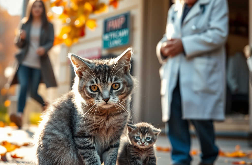 Изведнъж нещо привлече вниманието й нещо, което беше невъзможно да се игнорира: пред входа на клиниката седеше сивата котка. Тя жално мяукаше, а до нея лежеха малките котета. От време на време тя подскачаше и тичаше към минувачите, сякаш молеше за помощ. Викаше, просеше, настояваше, но хората само забързваха крачките си.