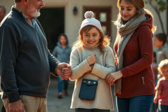 Тръгнахме към портата. Тогава тишината беше разбита от вик: Мамо!. Всички се обърнаха към нас. На бегом, с разперени ръце, тичаше момиченце с смешна шапка с помпон.