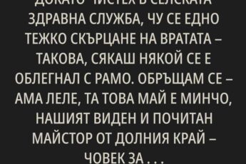 Пристигнахме рано, но не бяхме първи пред кабинета вече чакаше посетител дребен, светлокос мъж, хем чист, хем леко занемарен. Очите му шареха, ръцете държи някакви документи треперят леко. Дали от притеснение, или от махмурлук по-вероятно второто.