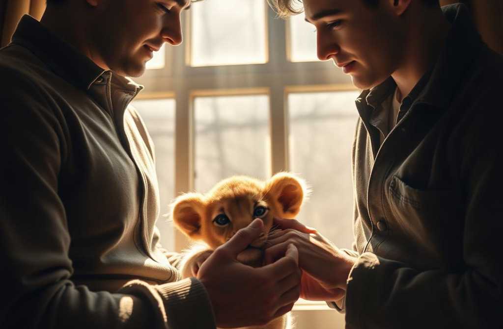 Един ден, бродейки из улиците, попаднаха на малък екзотичен зоомагазин. От витрината ги гледаха птици, маймуни и влечуги, но погледът им беше прикован към малка клетка, в която лежеше лъвче. Животното беше малко по-голямо от котенце, с огромни тъжни очи, които сякаш разбираха всичко наоколо.