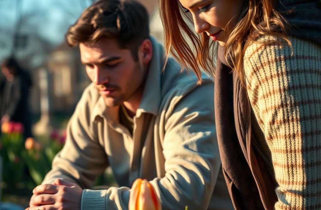 Малко се успокоила, жената му помогна да подреди цветята. Дълго стояха мълчаливи, после тя попита: