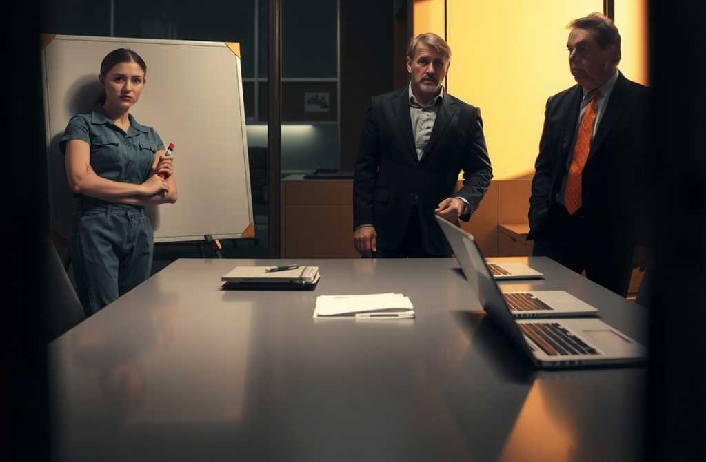 Обърна се бавно, очите ѝ блестяха не от страх, а от увереност. Остави парцала, пристъпи право към кабинета, хвана маркера до бялата дъска с онези сложни формули.