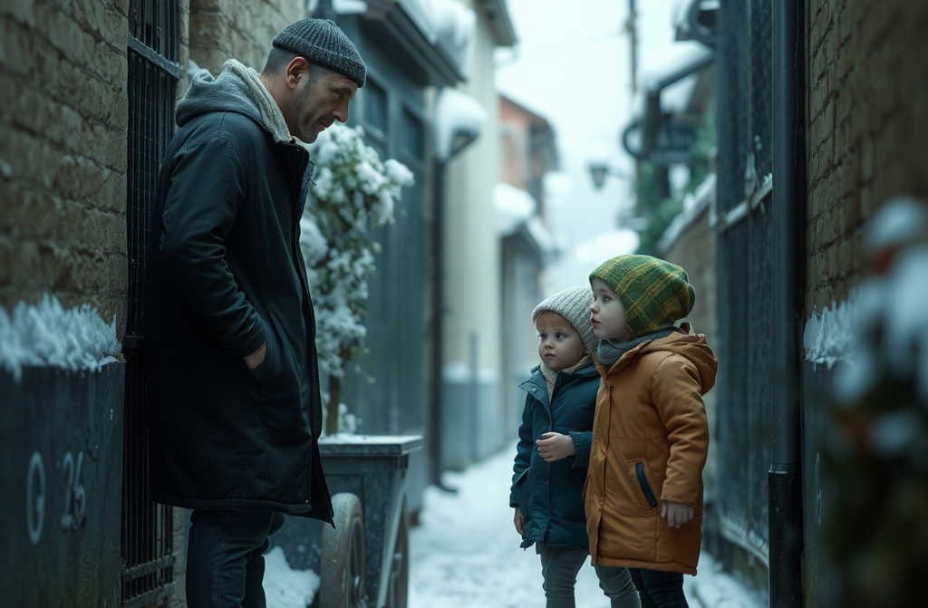 Калин спря толкова рязко, че се подхлъзна в снега. Зад един контейнер, сгушено в сенките, стоеше момиче, не по-голямо от осем, свило до гърдите си бебе, овито в тънко одеяло, което не вършеше никаква работа. Лицето ѝ беше зачервено от студа и плача, устните ѝ трепереха от страх, а очите ѝ го гледаха с онзи поглед, който не е просто детски ужас, а по-скоро нечовешка умора.