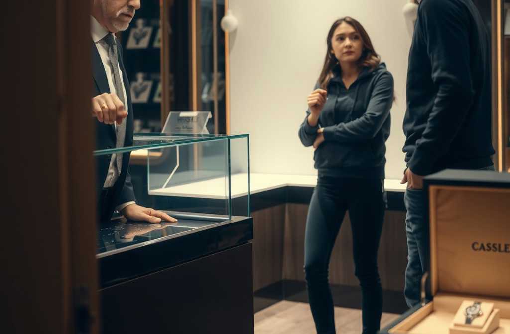 Вътре в лъскав бутик за швейцарски часовници в центъра на София където дори въздухът мирише на лукс управителят, нагизден като за прием при президента, кръстосал ръце като стотник на пост, гледа млада двойка, сякаш са влезли директно от входа на студентско общежитие. Децата са с широки качулки и износени гуменки като че за село Търново са тръгнали, а не в магазин за часовници Ролекс.