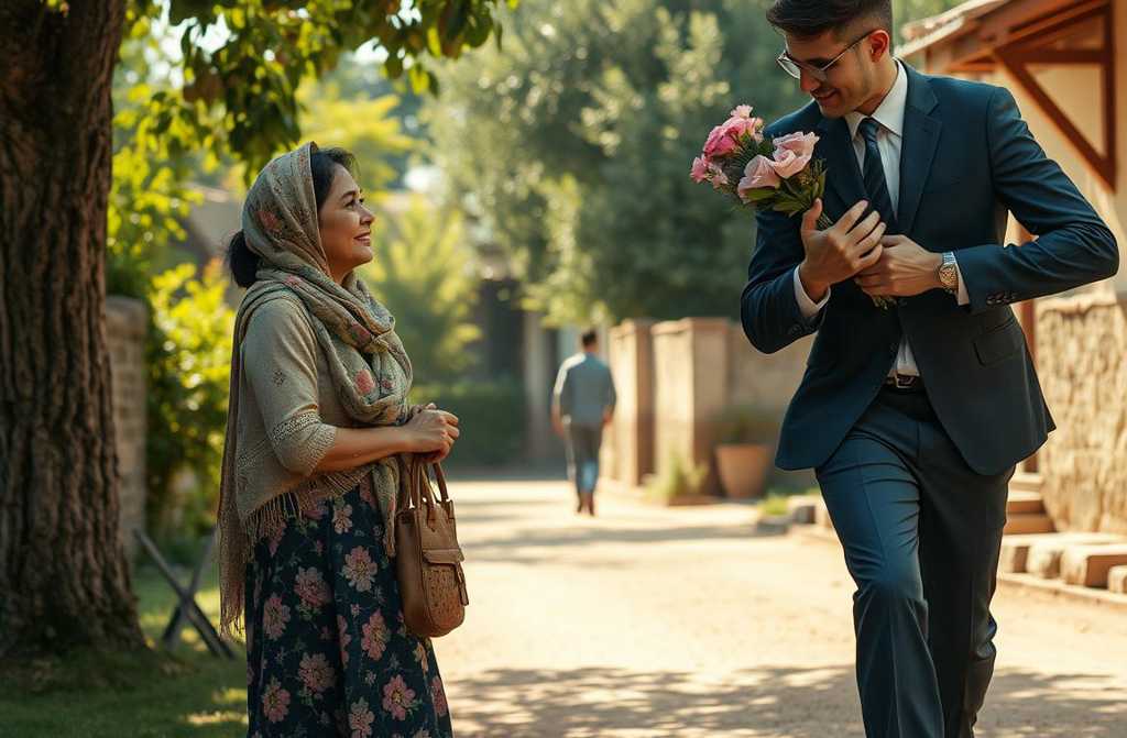 Автобусът спря в центъра на селото, вдигайки облак прах. От него слезнаха няколко души една баба с торбички, двама тийнейджъри, мъж на средна възраст. После, последен, висок младеж в тъмносин костюм, с куфар в едната ръка и букет цветя в другата.