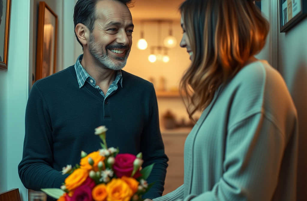 От жегата се изпотих, после изстинах, дори исках терафлу да пия, но по-добре три пъти натиснах копчето на домофона. Петър се появи след три минути на вратата, с ръка държеше огромен червен букет. В тесния коридор стана горещо.