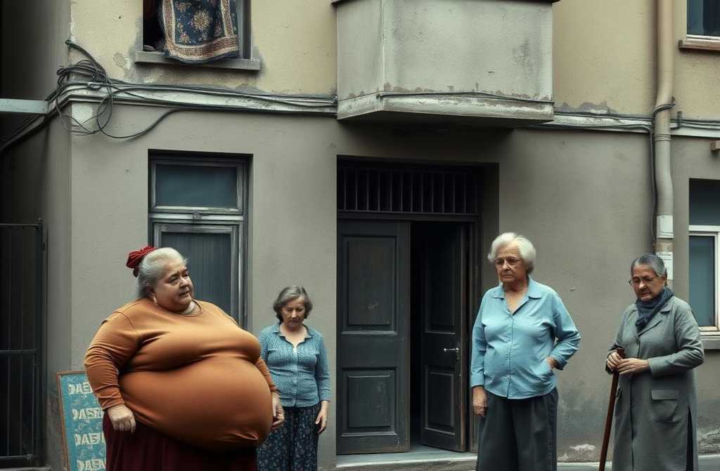 В една стара и запустяла сграда в София, пълничката жена Размила търкаше килима през прозореца, без да забелязва, че прахът пада върху слабичката Пенка от етажа по-долу.