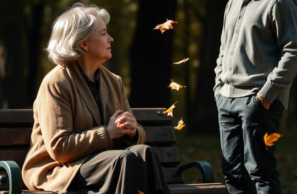 Радка Стоянова седеше на пейката, прегърбена, остаряла, но все още с отблясъци от някогашната й красота. Ръцете й трепереха.