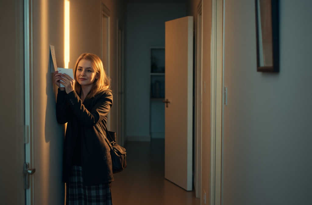 Вечерта се върна с чанта храна и чу странен шум в коридора сякаш нещо шари. Това беше нейната врата заключалката засече, ключът не искаше да се обърне. Натисна по-силно, ключът превъртя, но с хрущене. Сърцето ѝ се стегна неприятно.