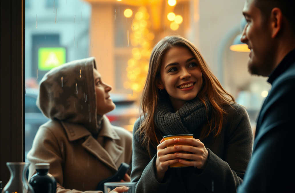 Изведнъж в креслото до него се насочи млада жена, капки дъжд се спъваха по нейната шапка, а в очите й блесна странен светлинен отблясък. Тя изглеждаше объркана, но се усмихна и, с леко колебание, остави палтото си в ръцете му.