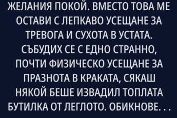 Не можеше да осмисли. Започна да ѝ се плаче тук, на пустеещата спирка, под студения светлинен кръг на уличната лампа.