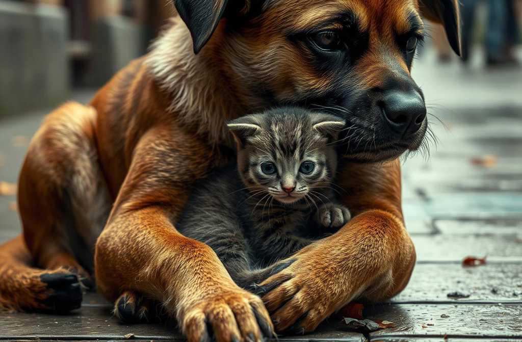 През нощта котенцето се събуждаше и мяукаше. Плачеше, а кучето го облизваше, за да го успокои.