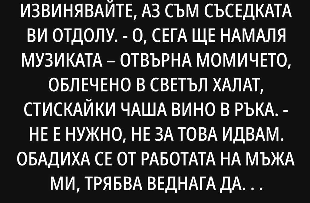 – Здравейте, Светлана! Извинявайте, аз съм съседката ви отдолу.