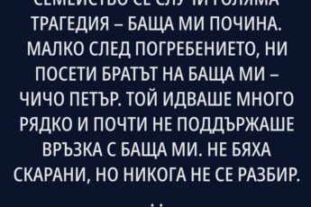 Когато за първи път чух за развода им, си помислих – просто не са се разбрали, както се случва. Но колкото повече разбирах за миналото на Стефан, толкова повече се изненадвах как е издържал всичко. Първата му съпруга, Радка, не знаеше абсолютно нищо за домакинството. Не готвеше, не почистваше, не я интересуваше нищо освен телефона и ноктите. Спасяваха се със закуски от супермаркета и рядко поръчани храни от заведение. В един момент Стефан се прегърна с мисълта и сам започна да готви след работа. А после тъщата се нанесе при тях – и всичко рухна. Семейството се разпадна.
